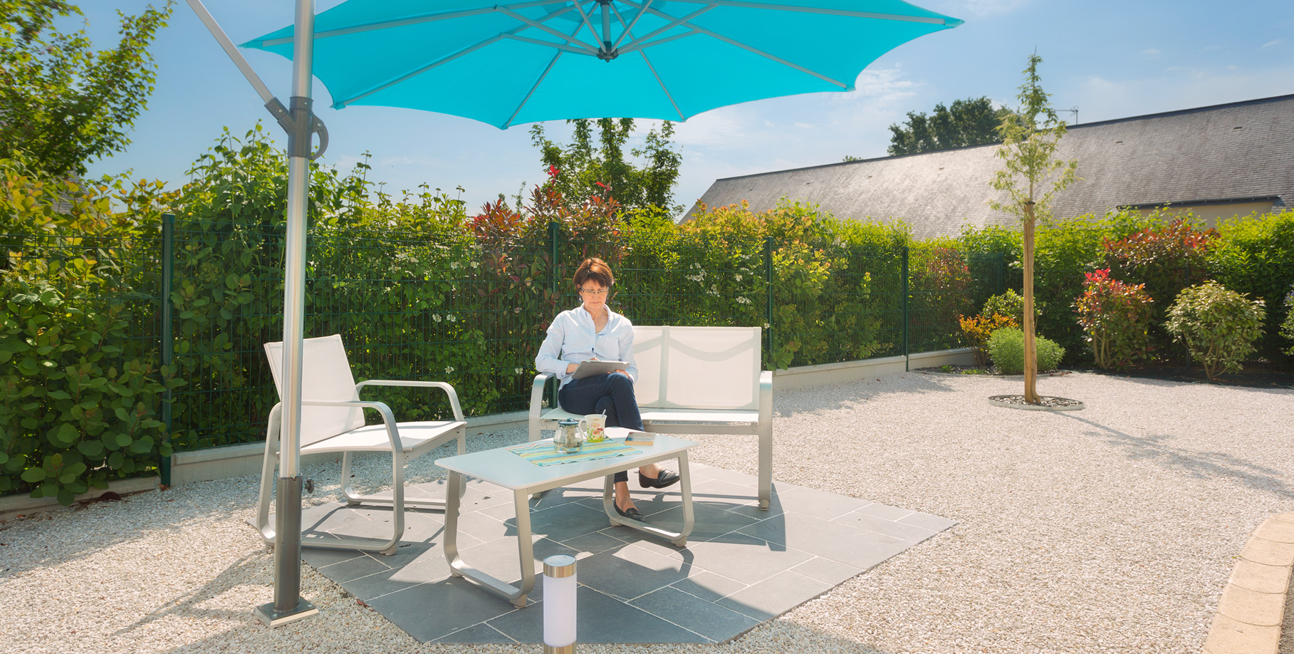 wird Ihr Sonnenschirm in einem unauffälligen Fuß sicher fixiert.