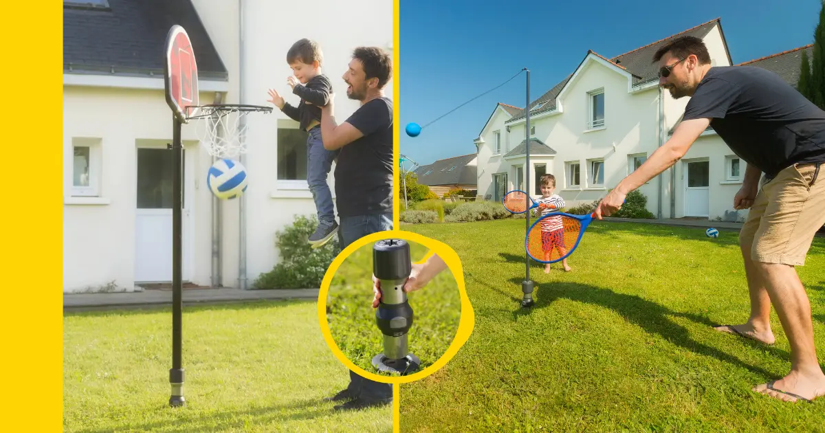 Abnehmbar und vielseitig einsetzbar passt sich die Multisport-Befestigung verschiedenen Outdoor-Geräten an. Sie ermöglicht es, Ihren Außenbereich je nach sportlicher Aktivität zu gestalten und gleichzeitig eine freie Fläche zu bewahren, sobald das Equipment entfernt ist. Eine praktische Lösung, um Ihren Garten mit Familie oder Freunden voll auszukosten.