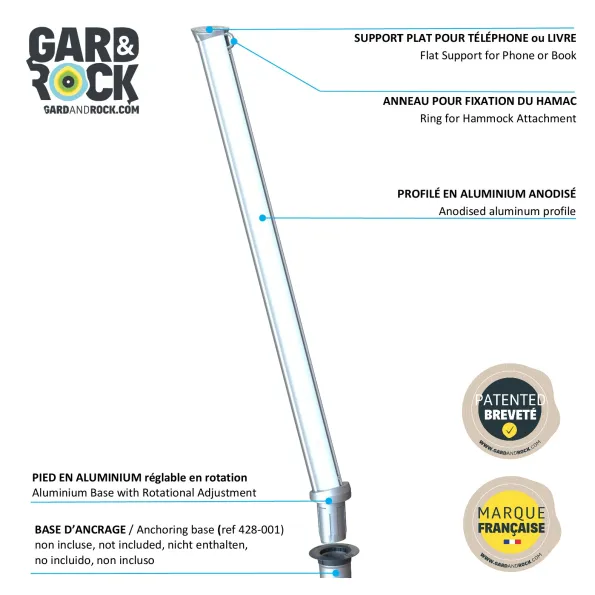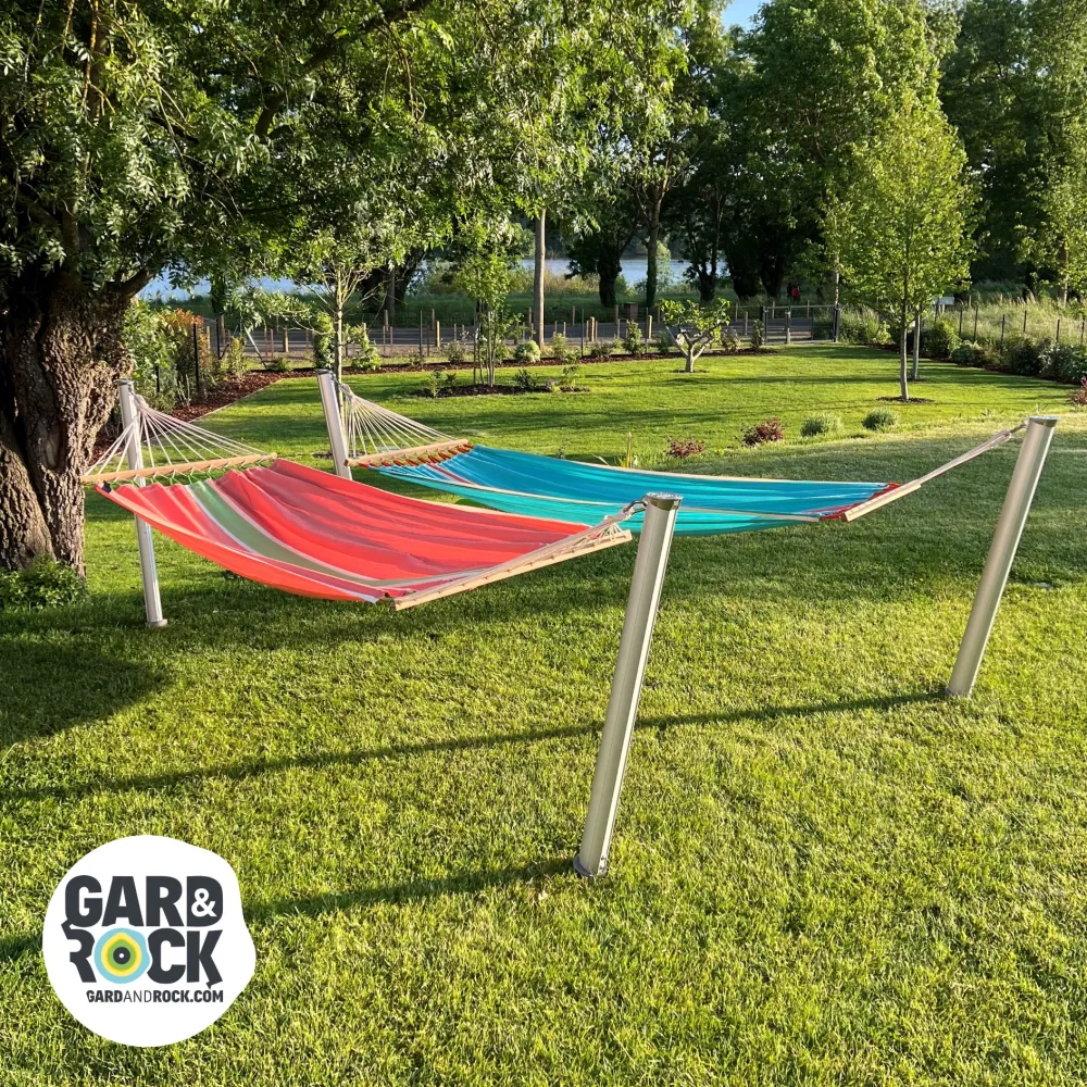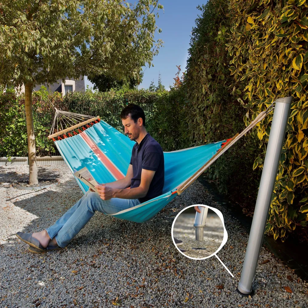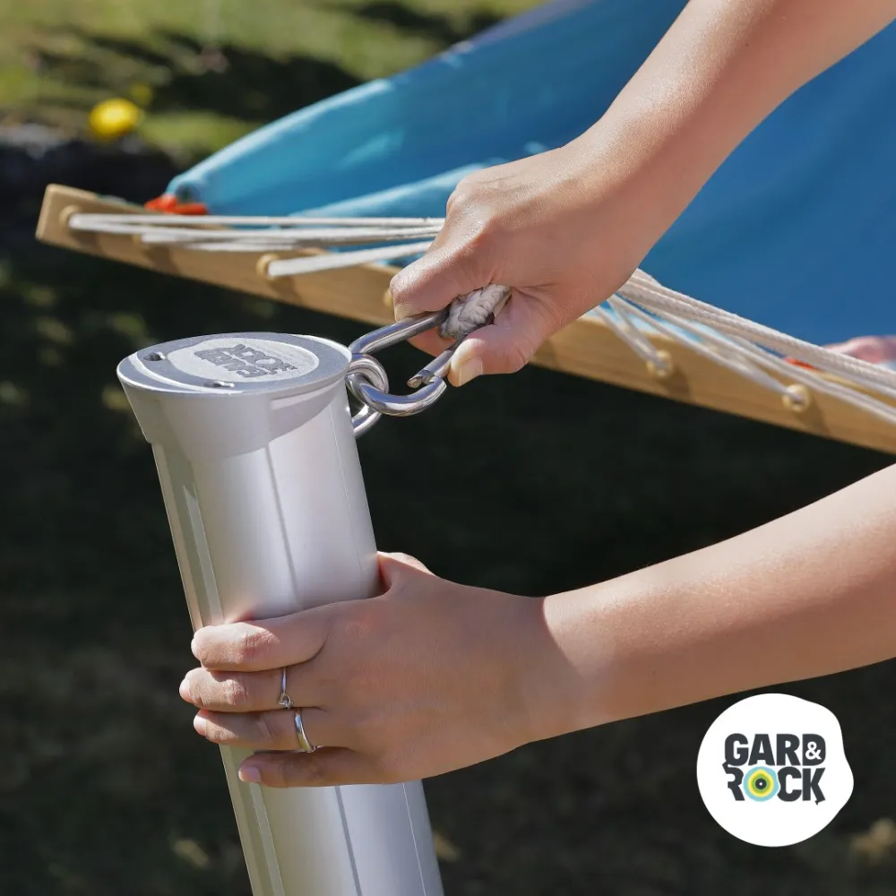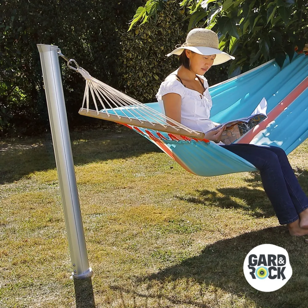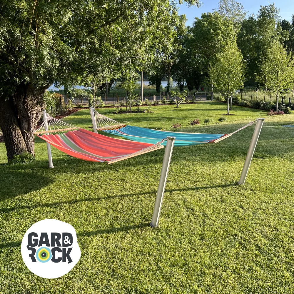 GARD&ROCK Pfosten ermöglichen eine einfache und leicht wieder herausnehmbare Befestigung überall in Ihrem Außenbereich (Terrasse, Rasen, am Pool...). Unser patentiertes System umfasst eine entfernbare Befestigungslösung, um Ihren Außenbereich im Handumdrehen umbauen und wieder frei räumen zu können. Kombiniert mit einem Baum oder als Hängemattenständer mit 2 Pfosten finden Sie bei sich den perfekten Ort zum Entspannen. Dieses in Frankreich entwickelte, hochwertige Produkt ist ausgesprochen robust und besitzt ein edles Design. Ein absolutes Musthave, um die Zeit in Ihrem Garten optimal zu genießen.