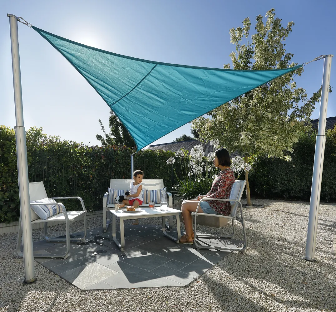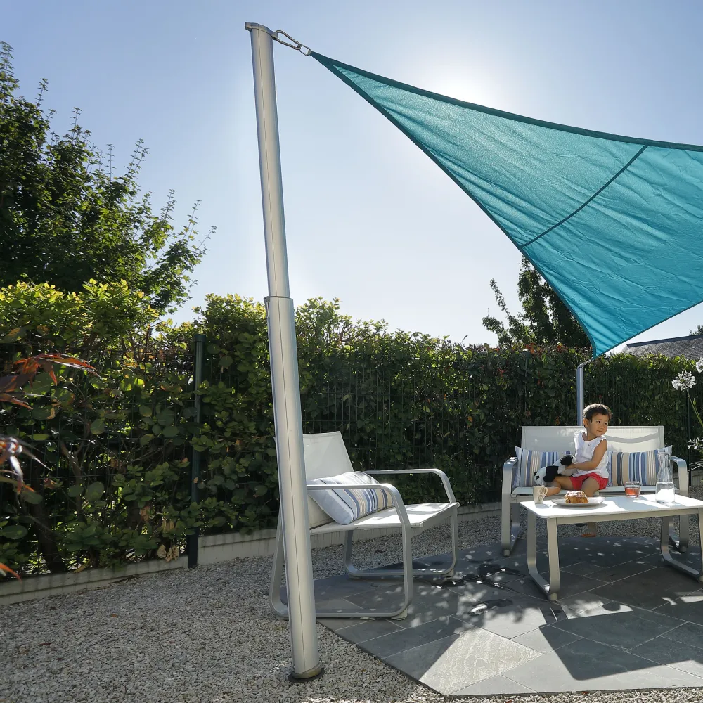 In Kombination mit den höhenverstellbaren Gard&Rock Masten können Sie das Sonnensegel schnell anbringen und abnehmen, ohne die Spanneinstellungen neu vornehmen zu müssen.