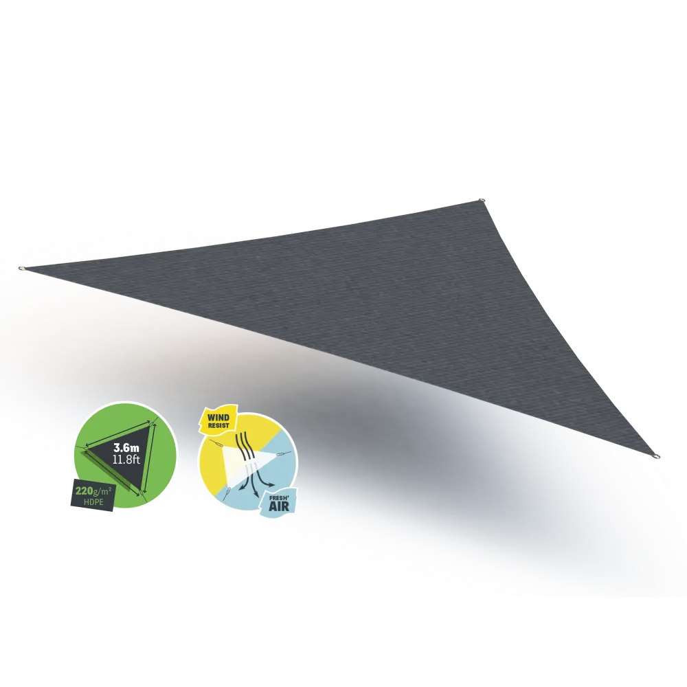 Entscheiden Sie sich für eine effiziente Schattenlösung in ästhetischem Design. Dank der Gard&Rock Sonnensegel in Dreieck in den Abmessungen 3,6*3,6*3,6 m / 4*3 m sind Sie vor der Sonne geschützt und setzen in Ihrem Garten gleichzeitig einen dekorativen Akzent. In Kombination mit Masten können Sie so überall in Ihrem Außenbereich schattige Plätze schaffen. Das Sonnensegel aus mikroperforiertem HDPE-Gewebe mit einem Gewicht von 220g/m2 ist qualitativ sehr hochwertig und wird in der Farbe Graphit angeboten.