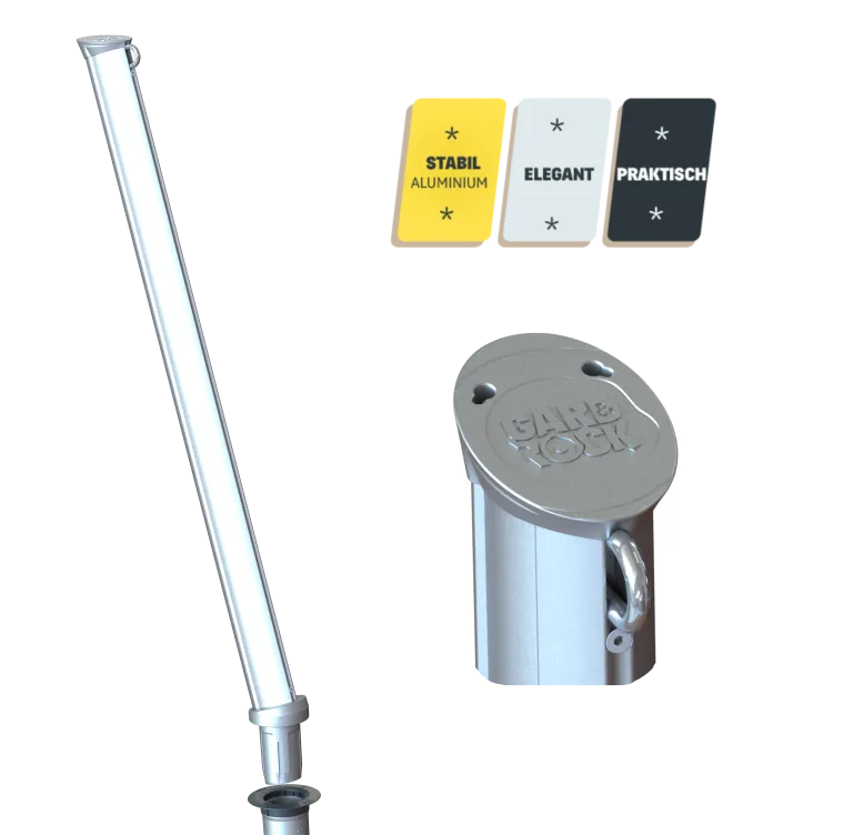 ☛ UNSER TIPP: zur Gewährleistung eines sicheren Stands, insbesondere wenn der Untergrund nicht besonders stabil ist, empfiehlt es sich, den Ankerfuß gemäß der dem Produkt beiliegenden Anleitung mit Beton zu vergießen. Dies ermöglicht eine sichere Verankerung der Pfosten auf lange Zeit, die dennoch weiterhin jederzeit leicht wieder abgebaut werden können. Sich zudem dieses Video anzusehen: