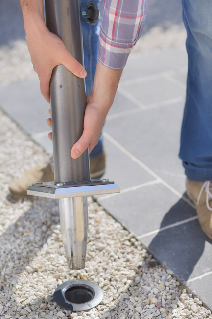 ☛ WIR EMPFEHLEN IHNEN: Bei einem weniger stabilen Untergrund oder großen Sonnenschirm, empfiehlt es sich, den Ankerfuß mit Beton zu vergießen. Die einzelnen Schritte sind in der Anleitung beschrieben und wir empfehlen Ihnen, sich zudem dieses Video anzusehen: