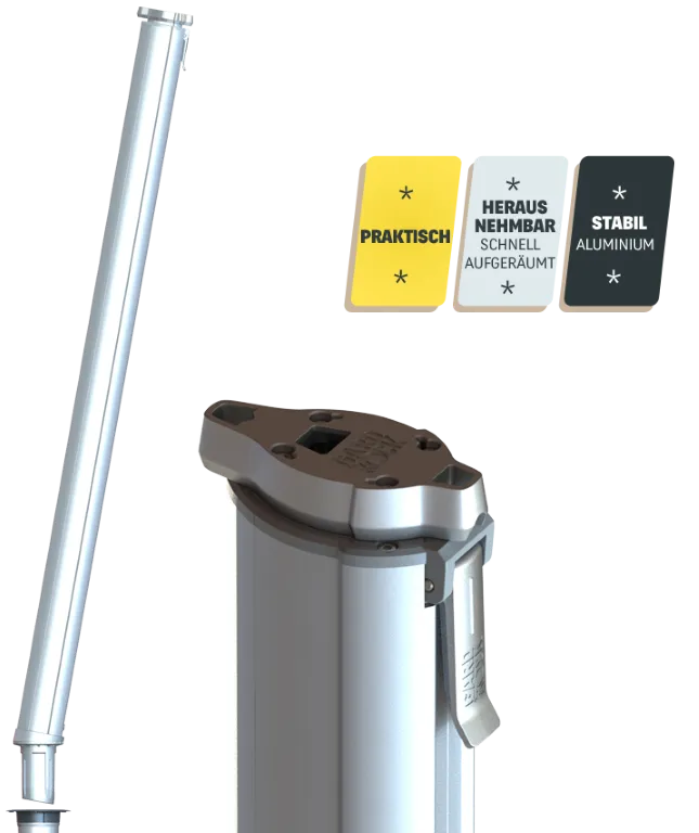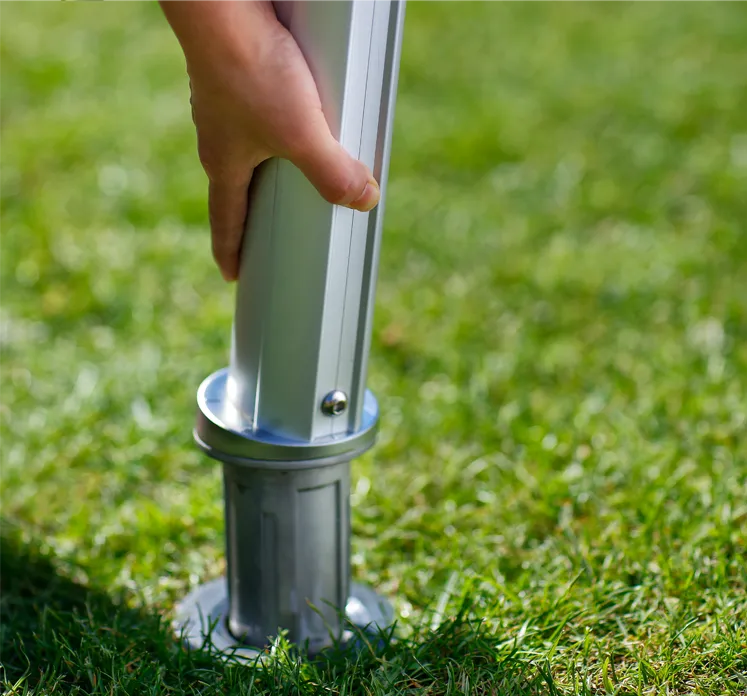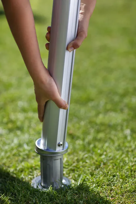Nachdem Sie die Gard&Rock Bodenbefestigungen bündig mit dem Boden installiert haben (Art.-Nr. 428-001 nicht mitgeliefert), können Sie die Befestigungsmasten einfach in diese einführen. So können Sie Ihr Gelände nach Ihren Wünschen gestalten! Insbesondere können Sie sich leicht Platz schaffen, um z. B. den Rasen zu mähen oder die Objekte für den Winter einzulagern.